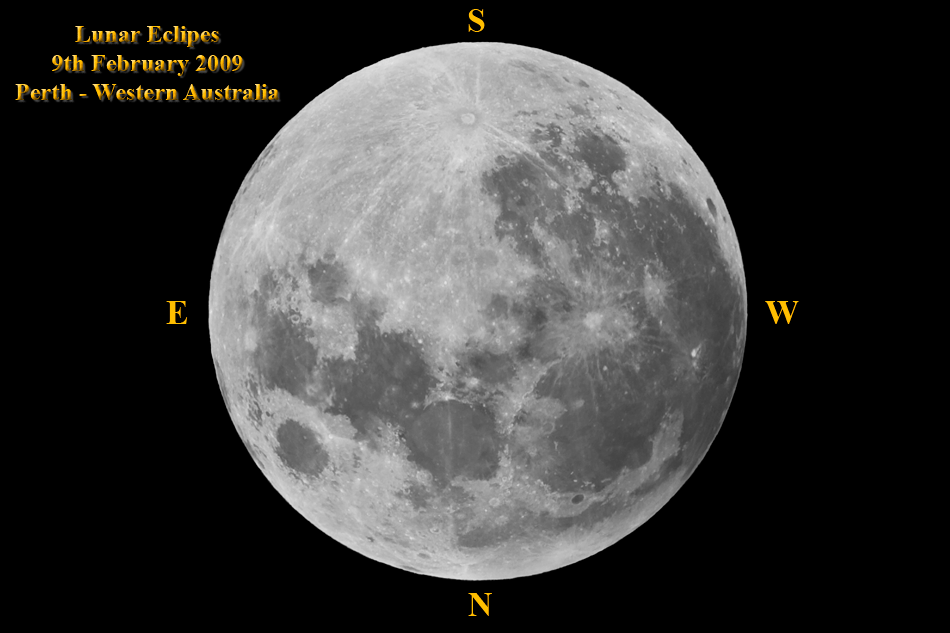 I have not displayed the moon in the conventional manner, instead it's shown as seen from the southern hemisphere so the moons south pole is at the top of the image whilst east is on the left.