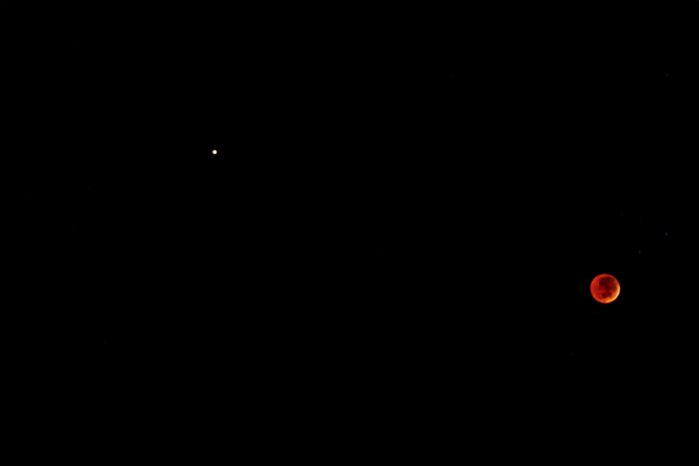 Comments Lunar Eclipse - 28th July 2018 A lunar eclipse comes when the sun, Earth and moon line up and Earth's shadow falls on the moon. It has been reported that this lunar eclipse will be the longest and darkest of this century. The red colour is a result of the light that manages to reach the moon travelling through the earths atmosphere which cause the blue's in the light to scatter leaving the reaming red colours to reach the moon to get it's red colour. The red's may have been enhanced on this occasion by the presents of volcanic ash particles in the upper atmosphere. Exposure times varied from 1/500 of a second with the moon in full sunlight to 30 seconds in the shadow of the earth. The 30 second exposure's resulted in stars being present in the background images of the moon, something that would not normally occur due to the large difference in brilliance between the moon and the stars under normal conditions. The Moon and Mars were relatively close in the sky during the eclipse. Mars being at opposition at the time was relatively bright to accompany the eclipse Moon in this wider field of view. Rain and clouds were once again the dominate feature of this lunar eclipse.