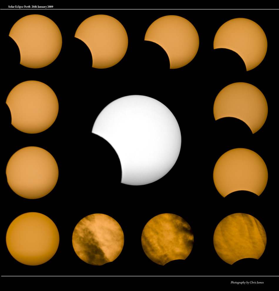 These are the actual images taken of the Solar Eclipse.   I took an image every 20 seconds, however for the image above I have chosen a image approx every 11 minutes to show the sequence from start to end.